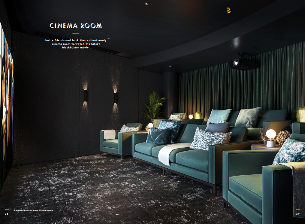 Within the community, there are comprehensive facilities for residents, including 12-hour concierge services, a gym, a private screening room, a Wi-Fi bar, and shared office spaces, among others.
